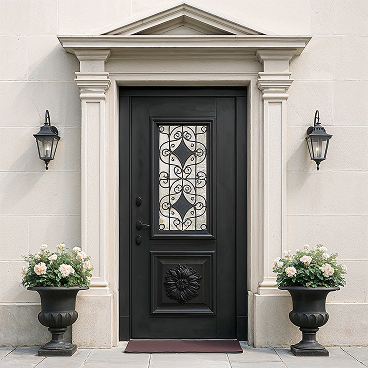 Утепленные модели с минеральным наполнителем снижают теплопотери коттеджа и расходы на отопление, герметичный контур блокирует проникновение холодного воздуха и влаги внутрь помещения. Парадные конструкции с элементами художественной ковки формируют представительный облик особняка, подчеркивая статус владельца. Двухстворчатые решения подходят для широких проемов до 2,5 метров, арочные варианты реализуют нестандартные архитектурные проекты любой сложности.