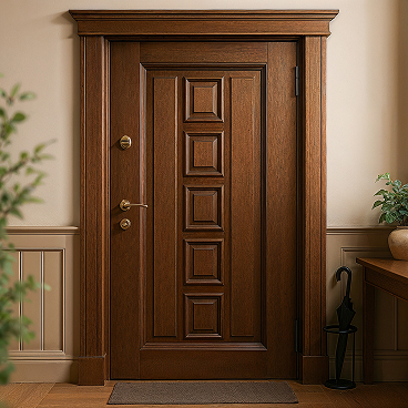 Антикоррозийная обработка металлических элементов гарантирует долговечность в условиях круглогодичной эксплуатации на улице, замковые системы 4-го класса защиты обеспечивают максимальную взломостойкость. Возможность индивидуального изготовления позволяет создать уникальную дверь под конкретную архитектуру дома — от классических филенчатых вариантов до современных моделей с панорамным остеклением. Шумоизоляция до 47 дБ обеспечивает акустический комфорт внутри помещения, создавая спокойную атмосферу для отдыха.